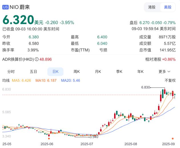 好在,从 7 月 10 日的乐道 L90 的产品技术发布会到现在,蔚来作为一家企业的整体势能开始从低谷中回升——而蔚来的美股股价也从 7 月 9 日的 3.48 美元,上涨到 9 月 2 日收盘的 6.58 美元,几乎翻了一倍。