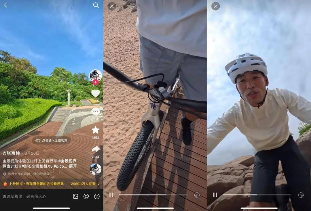 某种程度上,张京坤的愿望已经实现了一部分,他现在几乎每周都会在抖音分享影石360 X5拍摄的骑车全景视频,而沉浸式体验栏杆平衡、岩石速降这些高难度动作,也已经成了粉丝们的日常。