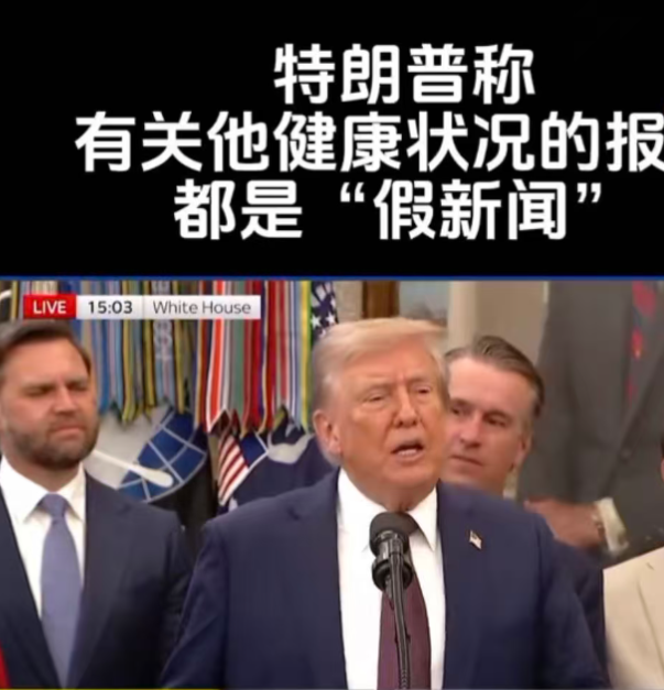 对此特朗普不得不公开露面,其针对记者对其健康状况及失踪的采访时称,我没有看到网上大面积流传我死亡的报道,目前所有报道我健康问题的都是“假新闻”。