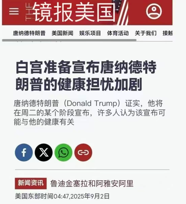 特朗普的麻烦包括西方精英集团控制的主流媒体对特朗普健康问题的攻击。美国镜报甚至宣称白宫准备宣布唐纳德特朗普的健康担忧加剧,唐纳德·特朗普证实,他将在周二的某个阶段宣布,许多人认为该宣布可能与他的健康有关。
