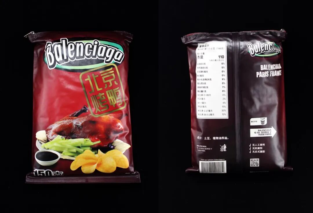 吃零食剩下的薯片袋,经巴黎世家之手,就变成售价上万元的手拿包。薯片袋的样式多种多样,在北京,他们还贴心地推出了地区限定款“北京烤鸭包”。