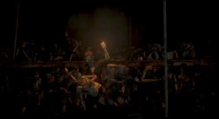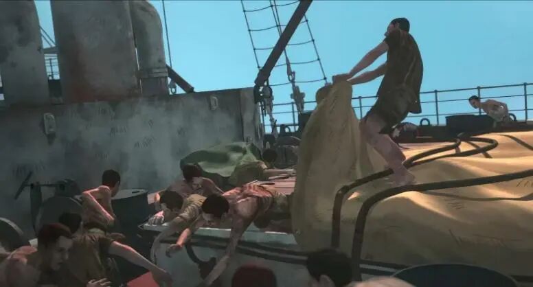 当一、二号舱的士兵冲上甲板时,三号船舱用来逃生的唯一木梯突然断裂,底层日夜泵水的炮兵团不得不接受了死亡的结局,没有尖叫和呻吟,战俘们不约而同地哼起了家乡的歌谣。