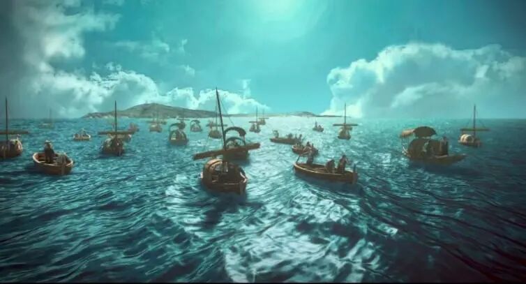 蓝色的海水被鲜血染红,空旷的海域被尸体堆满。