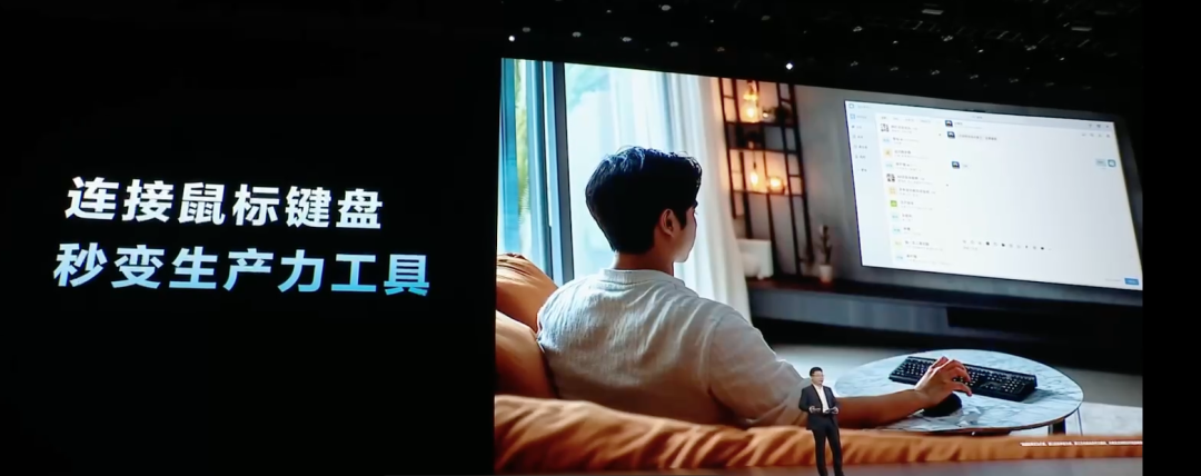 还嫌不够奇怪的话,那也可以给它连一个键盘,这时候这台 Mate TV 又能充当临时的 PC,让你可以直接坐在客厅里就开始当牛马码字。