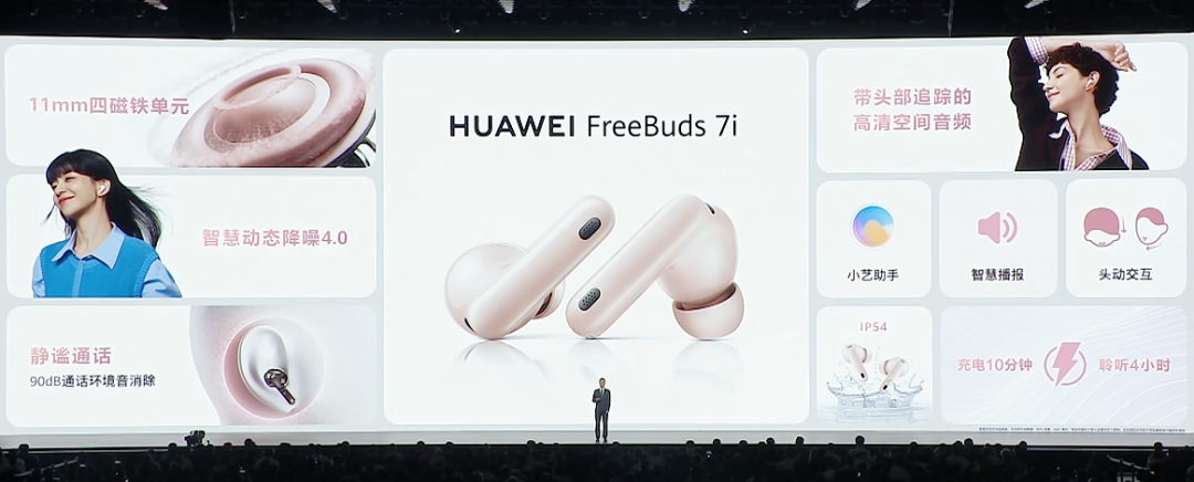 另外,今天的发布会上华为还发布了一款耳机华为FreenBuds 7i,因为它实在是太正常太像一款耳机了,托尼就不给大家展开聊了,一图流带大伙儿看一下吧,感兴趣的再去官网详细了解。
