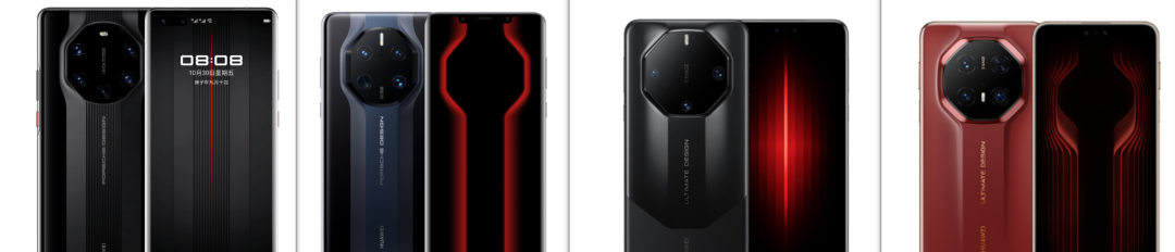 从左到右分别为 Mate 40 RS、Mate 50 RS、Mate 50 RS、Mate 70 RS