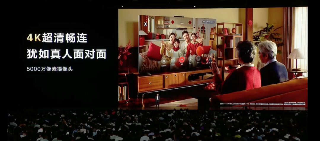 因为标配了摄像头和麦克风,华为 Mate TV 不但能让全家一起坐在客厅里视频通话。