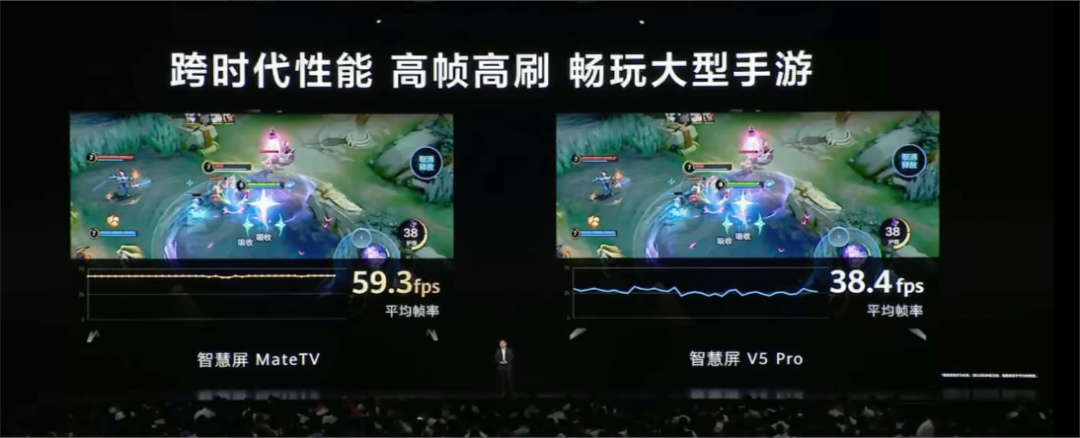甚至还展示了Mate TV 运行某 “大型手游” 的帧率表现,没有比这更诡异的发布会了。