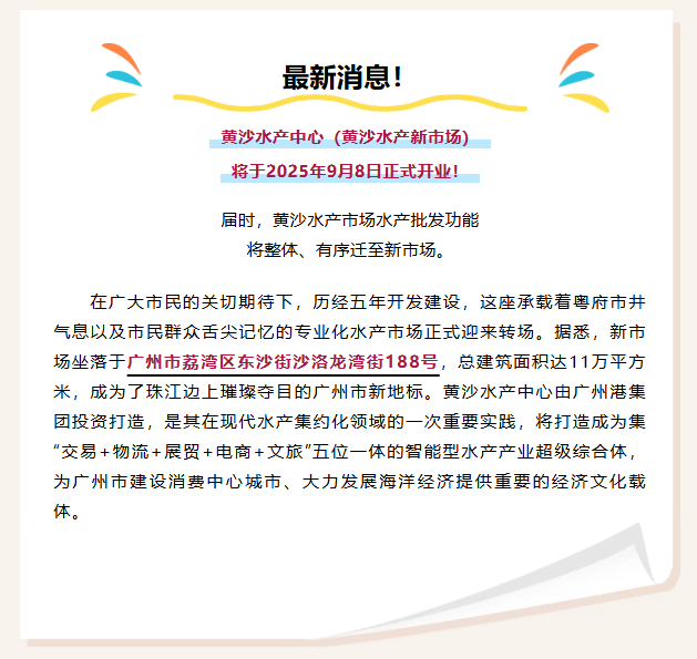 年交易量超27万吨,年交易额达上百亿元,享有“全国水产品价格风向标”之称的黄沙水产交易市场,真的要搬了!