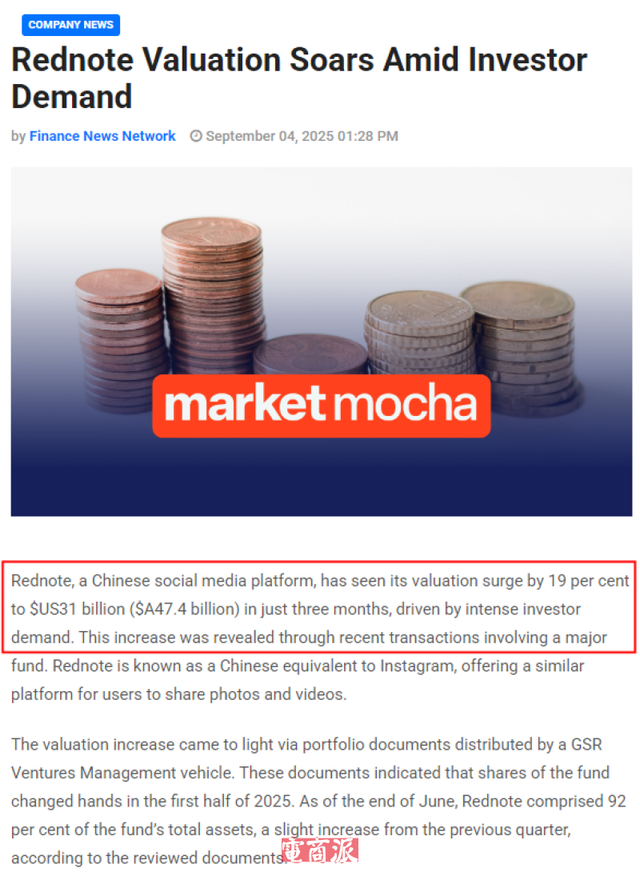 近期,据媒体消息,在2025年上半年的一系列市场交易中,小红书的估值在短短三个月内上涨了19%,从260亿美元飙升至310亿美元。