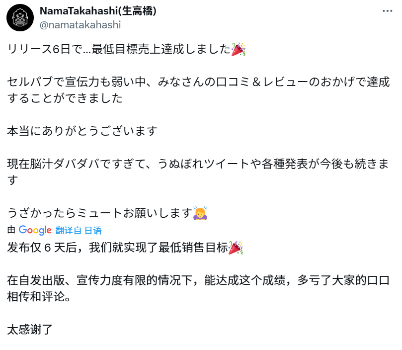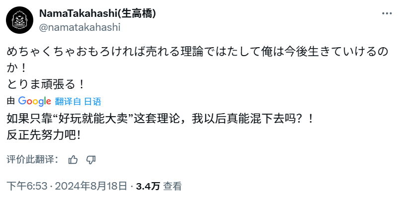 全职游戏开发的道路曲折且漫长。一直以来,生高桥始终相信,只要游戏做得超级好玩,就肯定能大卖。