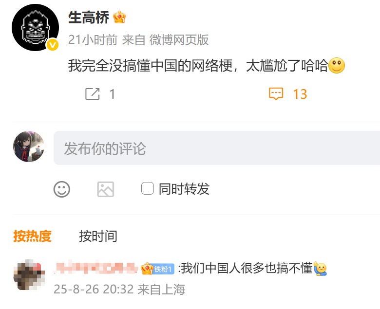只不过,在与中国玩家的交流过程中,生高桥最近好像又学到了一些奇怪的梗……