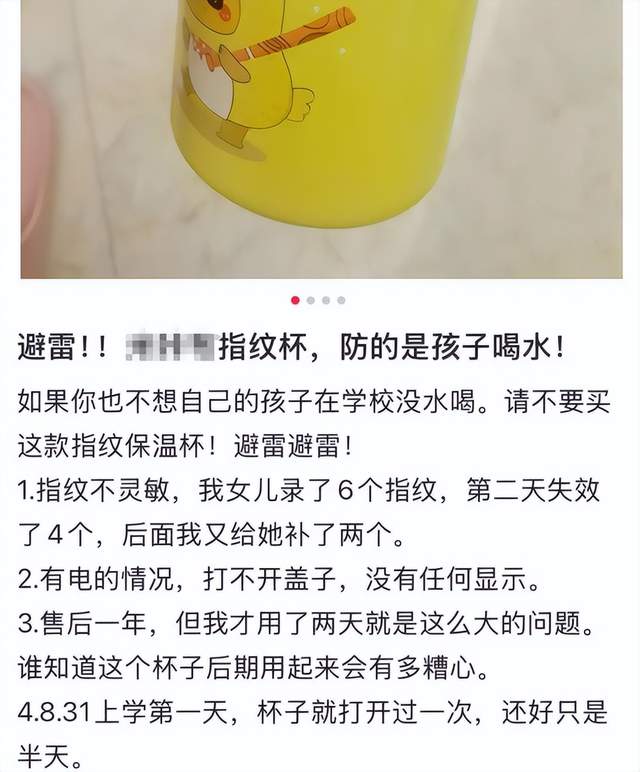 通过关键词搜索,我们发现几乎和指纹识别水杯同一时期走红的,还有社交平台上大量的指纹识别水杯避雷帖。