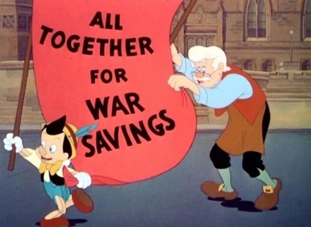 动画和战争在这段动荡的历史中不乏命运交织的时刻,比如迪士尼就在美国政府的要求下制作了许多政治宣传动画——在**《七个聪明的小矮人》(7 Wise Dwarfs)中,小矮人把矿石用于购买战争债券;在《元首的真面目》(Der Fuehrer’s Face)中,唐老鸭被法西斯的噩梦逼疯;在《团结起来》**(All Together)中,所有的卡通明星一同走上街头,为支持同盟国而游行……