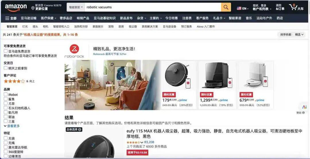 图注:亚马逊界面截图。同时,石头科技也在布局线下渠道,比如,在美国建立了海外子公司,并搭建了独立的售后服务体系。同时,其产品已进驻全球超1400家线下门店,包括BestBuy、Walmart、Sam’sClub等国际零售巨头。北美成为其核心增长点,2025年上半年出货量同比大幅增长65.3%。事实上,出海确实为销量增长带来了新契机。2024年,石头科技的海外营收占比已经超过50%,达到63.88亿。科沃斯去年的海外营收也到达了6808亿元人民币,较上年同期增长12.6%,占公司品牌业务收入的42.2%。而海外市场的分散,也让企业之间的竞争一时间不至于那么胶着。IDC发布《中国品牌领跑一季度全球扫地机器人市场,行业集中度持续提升》报告显示,石头科技出海的重点是西欧,在捷克、丹麦、芬兰、德国、以色列、韩国、挪威、波兰、瑞典、土耳其、阿联酋,石头科技出货量均排名第一。而科沃斯重点发力区域为亚太、俄罗斯、中东等。一位供应链人士告诉Tech星球,在海外追觅和石头科技咬得非常紧,尤其是在德国。新产品一上来,大家的排名就立马会有变化。事实上这些扫地机器人企业在全球某个地区都可能排第一。IDC报告显示,追觅的市场优势在西南欧地区尤为突出,在法国、意大利、比利时等多个国家出货量均位居榜首。但即便是去海外,在产品并没有明显差距,创新乏力的当下,伴随着竞争的加剧,扫地机器人无止境的内卷依然没有结束。捡完低垂的果实后,它们终将杀入对方的领地。