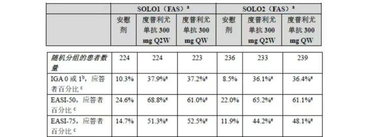 而度普利尤CHRONOS研究显示,在联合TCS的情况下,QW组和Q2组EASI 75比例均超过60%,且与安慰剂组的差异均超过40%。