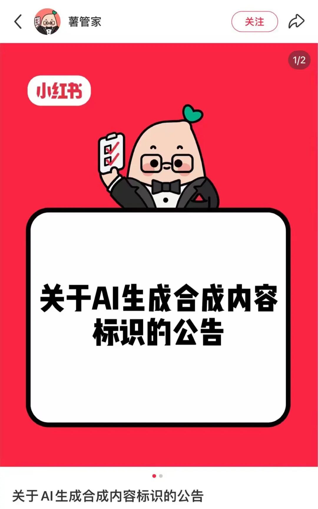 发布完成后,记者注意到,主动标注后,B站的AI标识相对明显,视频的左下角和简介中均显示了相关提示,而小红书则较为隐蔽,只有点击作者头像才能看到“笔记含AI生成内容”的标识。