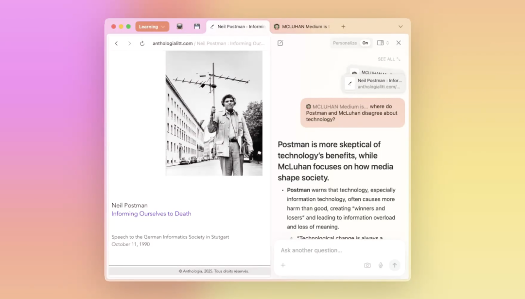 Dia 浏览器功能页面| 图片来源:Dia 官网