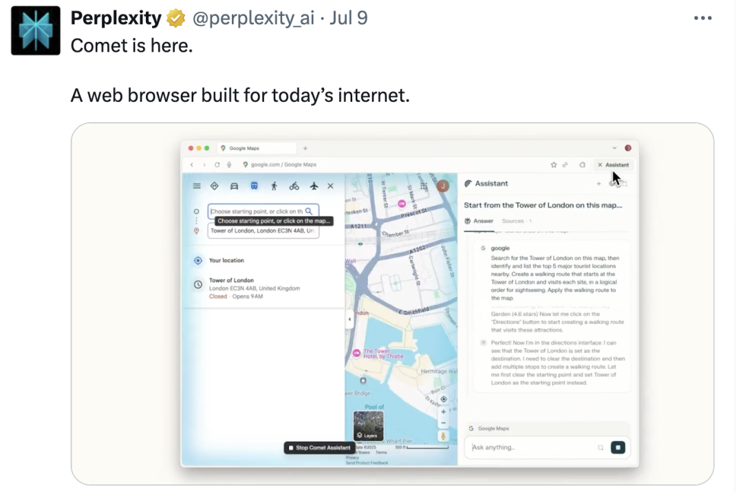 Perplexity 也在推 AI 浏览器| 图片来源:X