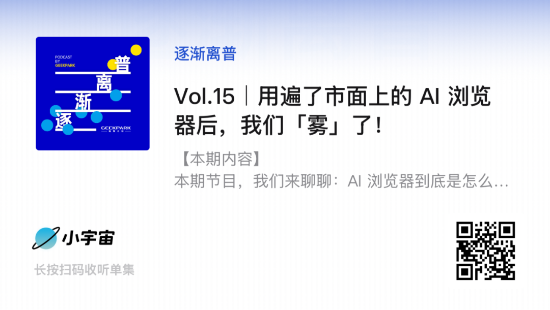 等尘埃再落一点,几乎所有浏览器预计都会「有 AI」,从「看网页」到「办事情」,演进的方向很明显。问题在于谁能拿走这个入口。