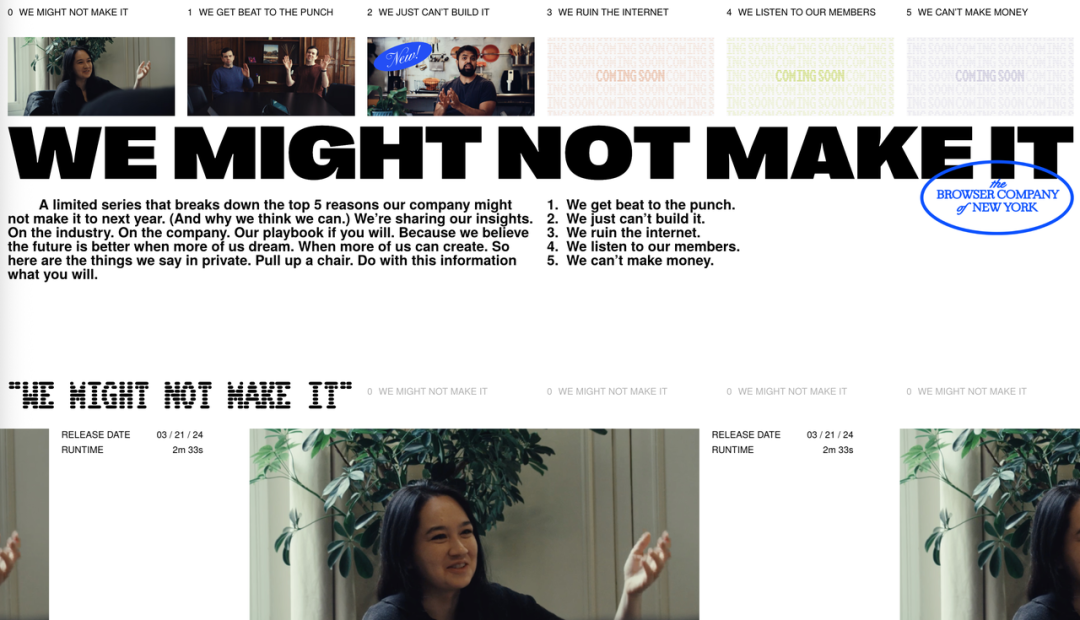 「我们可能撑不下去了」网站| 图片来源:The Browser Company