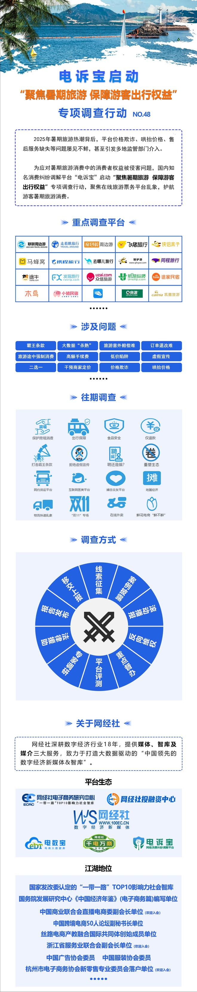 值得注意的是,为应对暑期旅游消费中的消费者权益被侵害问题,8月12日,消费纠纷调解平台“电诉宝”启动**“聚焦暑期旅游 保障游客出行权益”**专项调查行动,聚焦在线旅游平台乱象,护航游客暑期旅游消费。