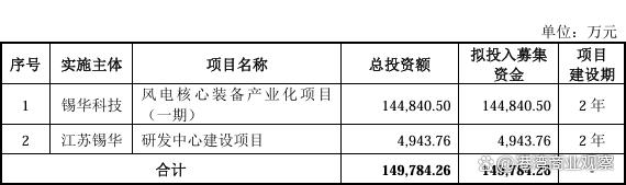 此次IPO,锡华科技计划拟募资14.98亿元,其中募投计划的96%即14.48亿元用于风电核心装备产业化项目(一期);4943.76万元用于研发中心建设项目。然而,这一募资金额较初次递表时募资金额已然被砍掉了5.5亿元的补流项目。