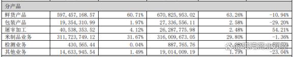收入分产品来看,上半年除却屠宰加工营收增长外,其他产品线均迎来不同程度的下滑态势。2025年上半年,鲜货产品、米制品产品实现营收5.97亿、3.12亿,营收占比分别为60.71%、31.67%,营收分别同比下滑10.94%、1.36%;包装产品、检测业务、其他业务营收分别同比下滑29.20%、51.50%、23.04%。