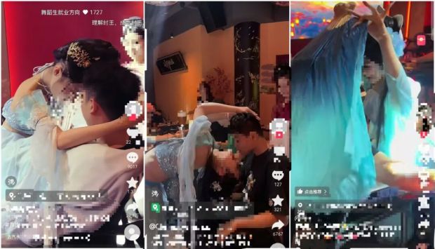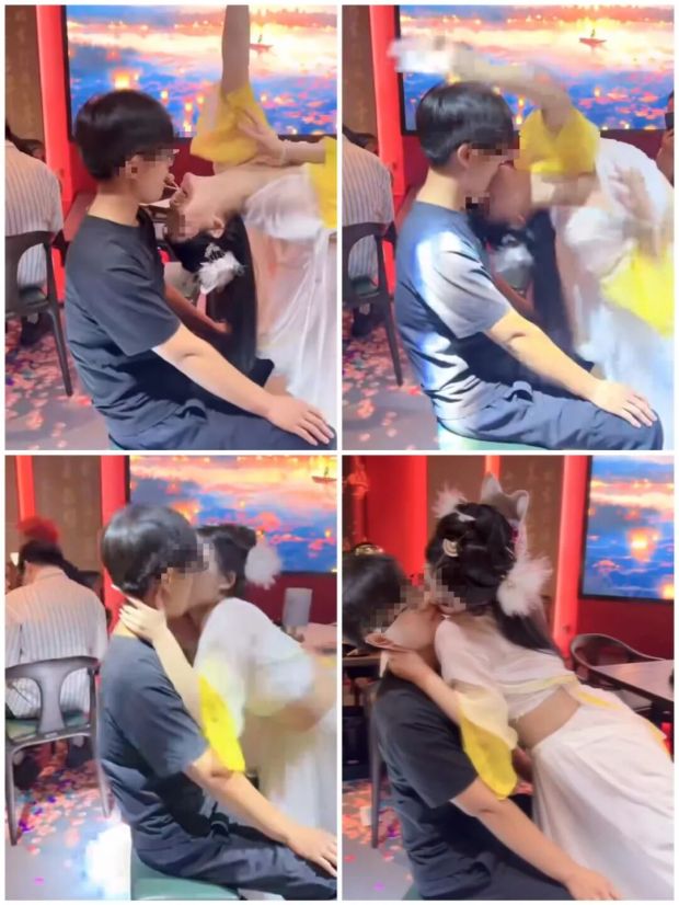 这些穿着清凉、打扮得花枝招展的小姐姐们,先在大家面前表演舞蹈等,然而这舞蹈跳着跳着,不仅会跳到食客身上,有的更直接与消费者“接吻”。