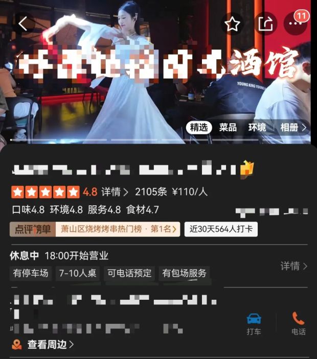笔者在某点评平台上注意到,这家酒馆评分挺高,达到4.8分,目前共有2105条评价,人均价格110元。并且该酒馆只开“夜场”,每天晚上18点营业,到次日3点下班。