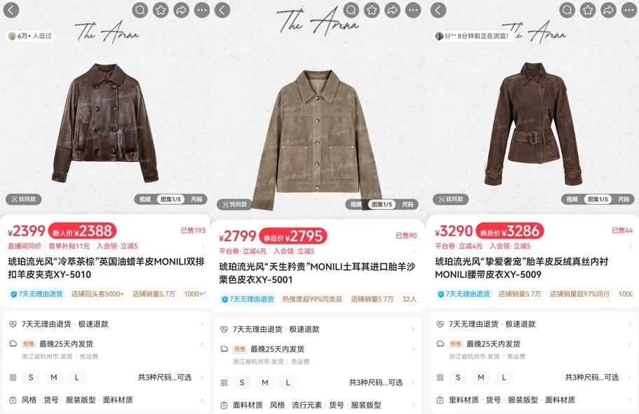 沐沐 Arena提前上新皮衣皮草类产品 图源:抖音商城