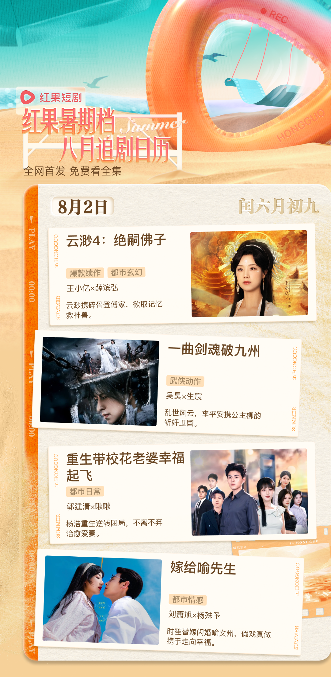 另外,复盘本届暑期档成绩单,还能看到**果燃计划的一系列新成果。**档期内上线了新华社共创联动、《亮剑》原班人马打造的抗日谍战短剧《山河回响》,联合完美世界出品的年代女性创业方言短剧《弄潮》,以及根据真实案例改编的反诈普法短剧《云端捕手》,首部聚焦敦煌文化的舞蹈微短剧《舞动敦煌》。反法西斯题材短剧《贝家花园的秘密》已经开机。