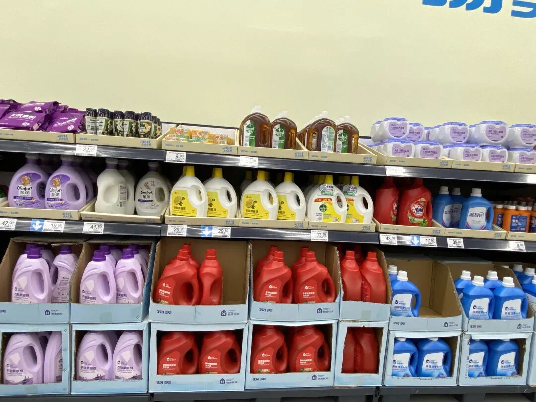 DoNews注意到,物美的一些日用百货,在包装上与该品类头部企业不乏相似之处,乍一看略显“山寨”。比如,卫生纸与心相印品牌,洗衣液与蓝月亮品牌、奥妙品牌,衣物除菌液与滴露品牌,柔顺剂与金纺品牌,等等。