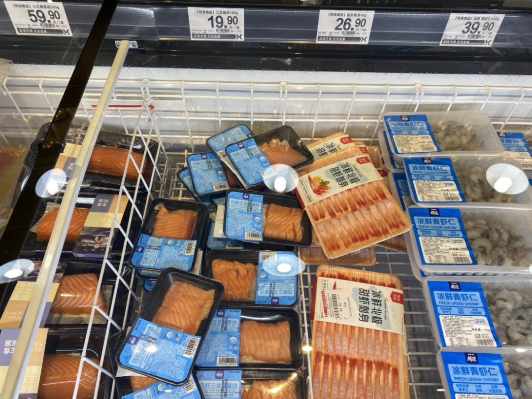 “这里100克的进口三文鱼块居然只要19块9,我在别的地方买这个品质、这个分量的三文鱼可能要花近50块。”一位年轻消费者告诉DoNews,她是在网上看到物美超值开业的消息后特意打车过来逛的,“想看看到底有多超值,结果真的很划算。”