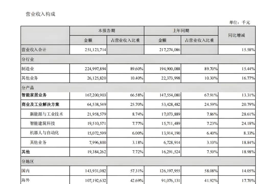 财报显示,上半年新能源及工业技术业务营收219.59亿元,同比增长28.61%;智能建筑科技营收195.11亿元,同比增长24.18%;机器人与自动化业务营收150.73亿元,同比增长8.33%。单看增速,新兴业务似乎表现不俗,但深入盈利数据便会发现,这些业务不仅未能撑起估值,反而可能成为拖累。