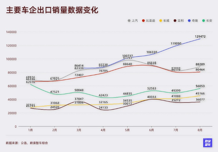从成果看,奇瑞仍然是海外市场表现最好的企业,8月海外交付12.94万台,奇瑞的增长势头非常明显,从5月突破10万台后一路扶摇直上。