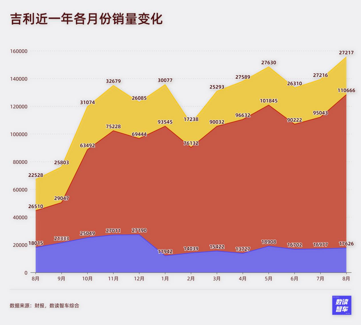 银河之外,领克+极氪系列也值得关注,这两款车型8月合计交付了4.48万台,已经超越了多数新势力车型。