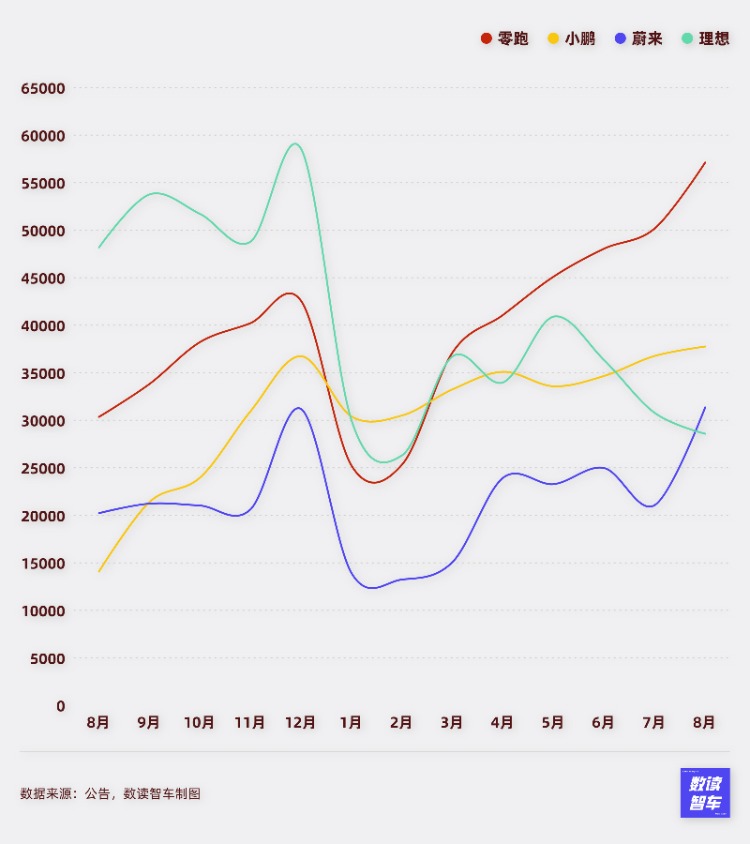新势力车企的变动极为猛烈,在2024年一骑绝尘的理想,开年就被反超,8个月内,销量冠军不断易主,排位不断变化。