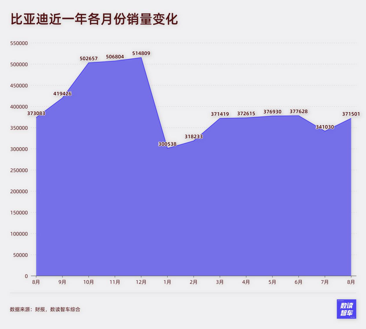 8月,比亚迪销量依然凶猛,37.15万台,是所有车企难以望其项背的存在。