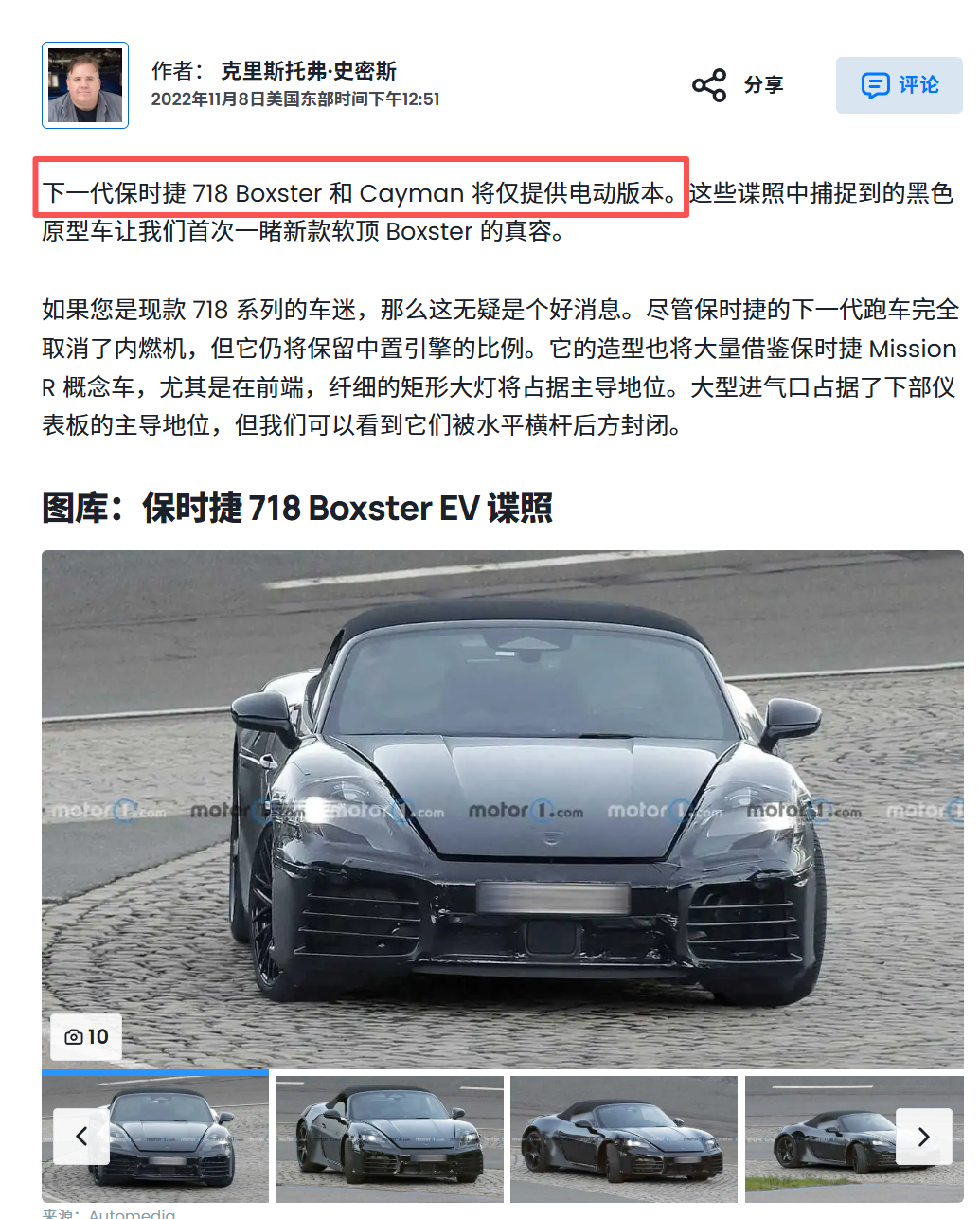 根据外界消息,以后的 718 会和 Tycan 一样变成电车**。**