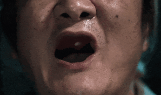 面对镜头,他掰开嘴唇,取下两排假牙。