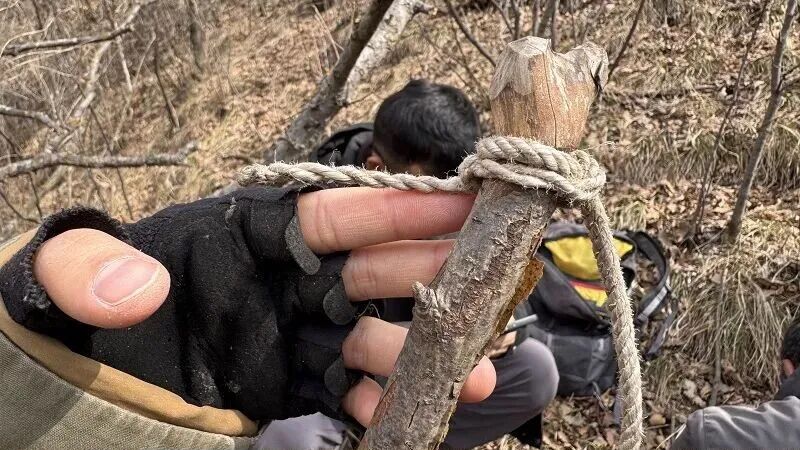 捕虎套一般会沿森林小径埋设,特别是在山梁上和其他老虎喜欢行走的地方,最多几平方米的范围内能下30个套子。之前老蒋给我们做过科普,豹子也爱走山梁,这是猫科动物的行为习惯,而食草动物不愿意走,因为它们需要遮蔽。所以猎人选择在山梁下套子,可以反映其捕猎的目标。