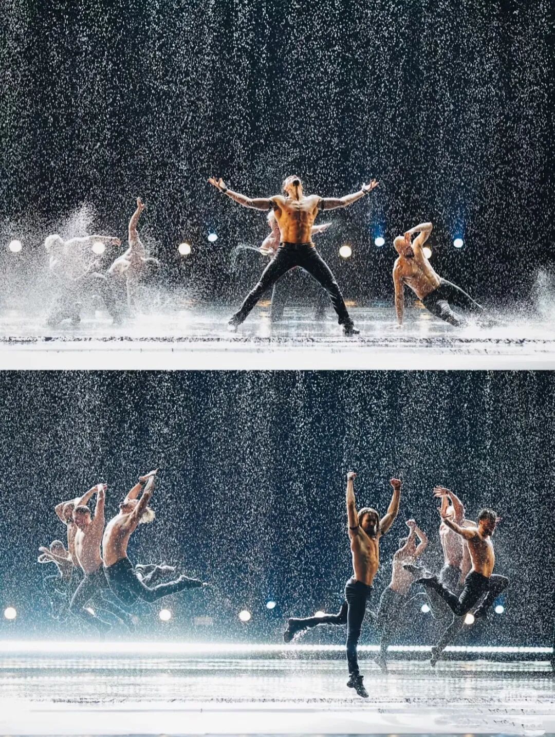 去年开始在中国巡演的俄罗斯水舞剧《雨中》同样掀起了讨论热潮。与其他表演不同的是,《雨中》主打沉浸式雨幕设计,演员们在水中湿身跳舞,没有明确的演员互动,欲望与暧昧的边线也较为清晰。
