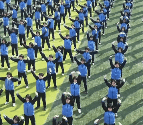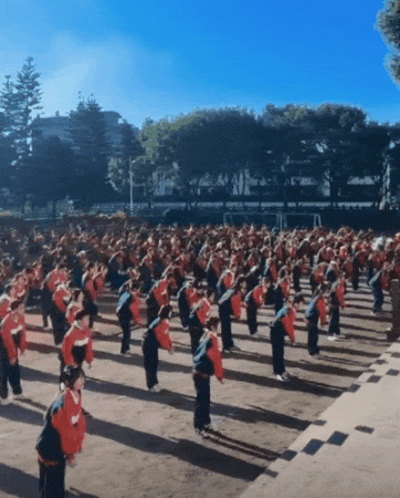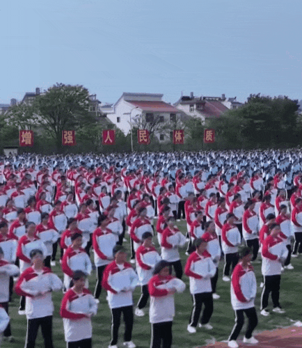 云南一所学校,更是4000多名师生课间齐做八段锦,动作整齐划一,让人叹为观止。