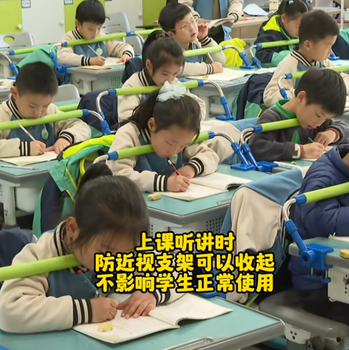 还有一所小学安装了防近视支架,防止孩子们过度低头。