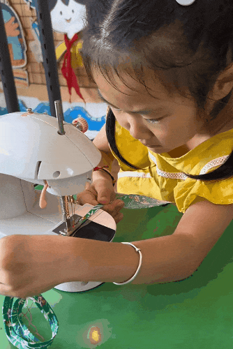 孩子们用起缝纫机来,甚至比一些家长都顺手。