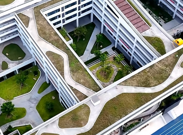 学校天台上设有屋顶漫步道路,行走其上,可以离广袤的天空更近一些。