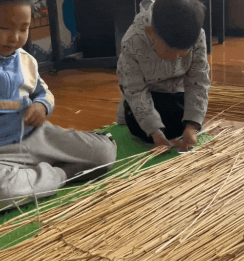 孩子一番“穿针引线”,一个精致的小马扎就做好了。