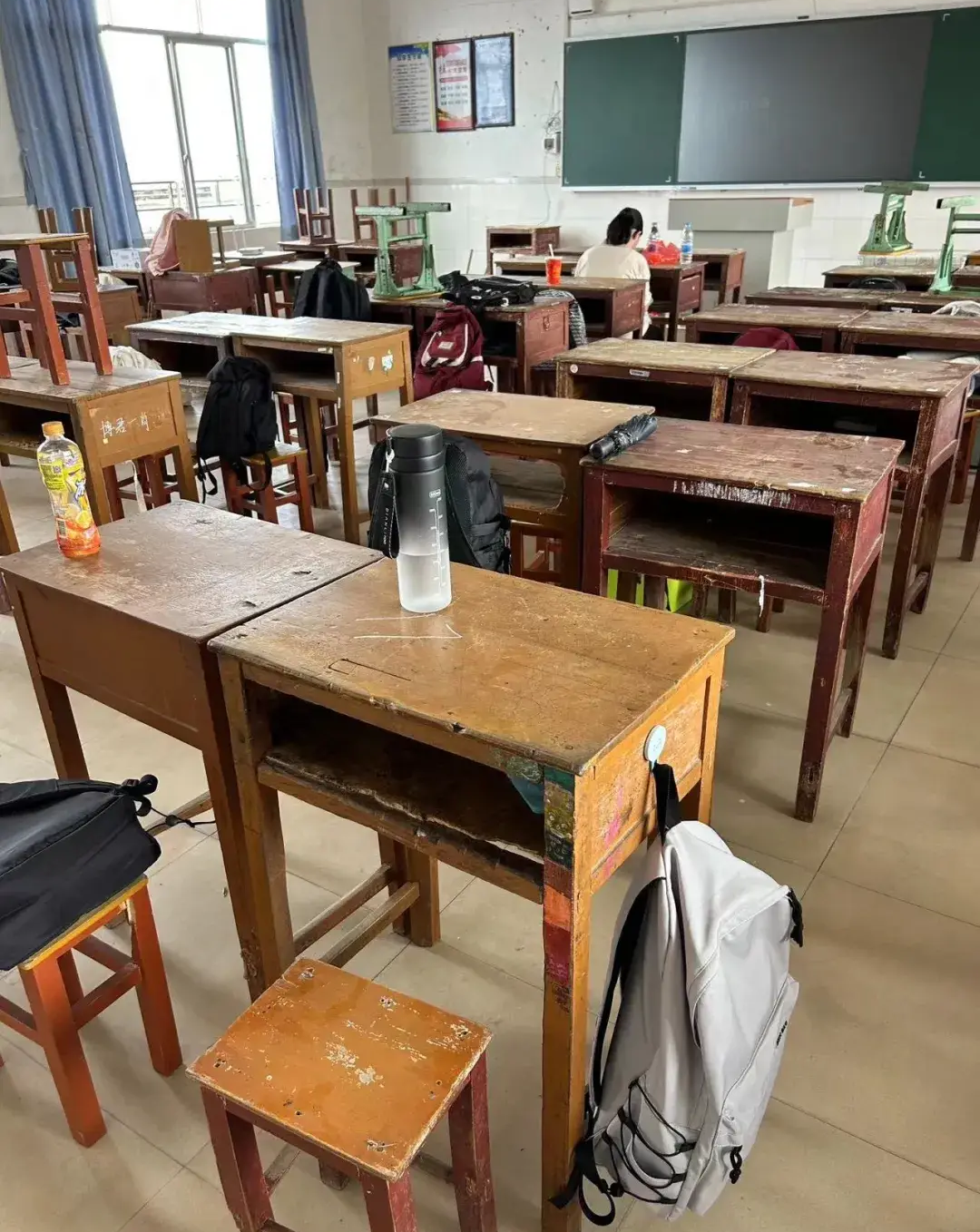 浙江许多小学,椅子上有靠枕,保护孩子们的颈椎。