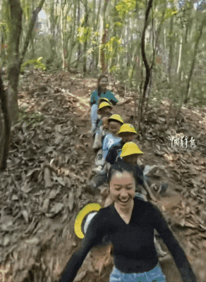 老师们带着孩子从山坡上滑下,欢声笑语伴着尘土飞扬,这种感觉,在城市待惯了的孩子们很难体验到。